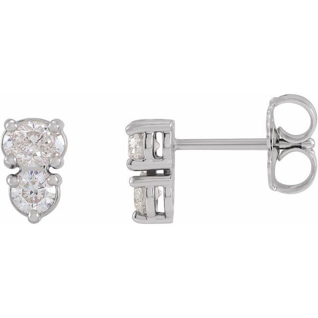 14 Karat White Gold 0.50 Carat Natural Diamond  Two Stone Earrings