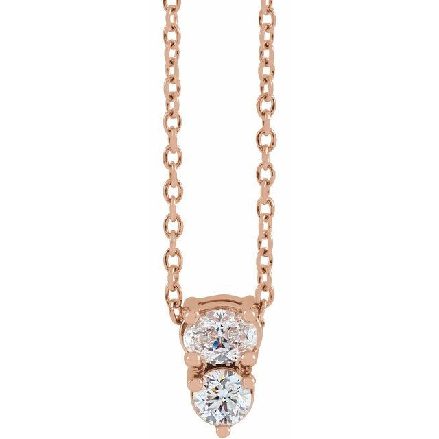 14 Karat Rose Gold 0.25 Carat Diamond Two Stone 16 inch Necklace