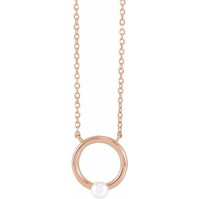 14 Karat Rose Gold Cultured Seed Pearl Circle 18 inch Necklace