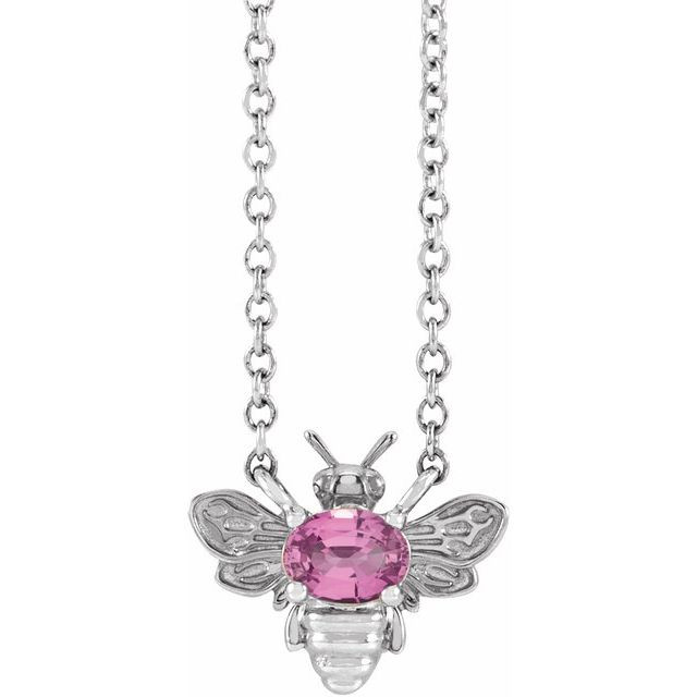 Platinum Natural Pink Sapphire Bee 16 inch Necklace
