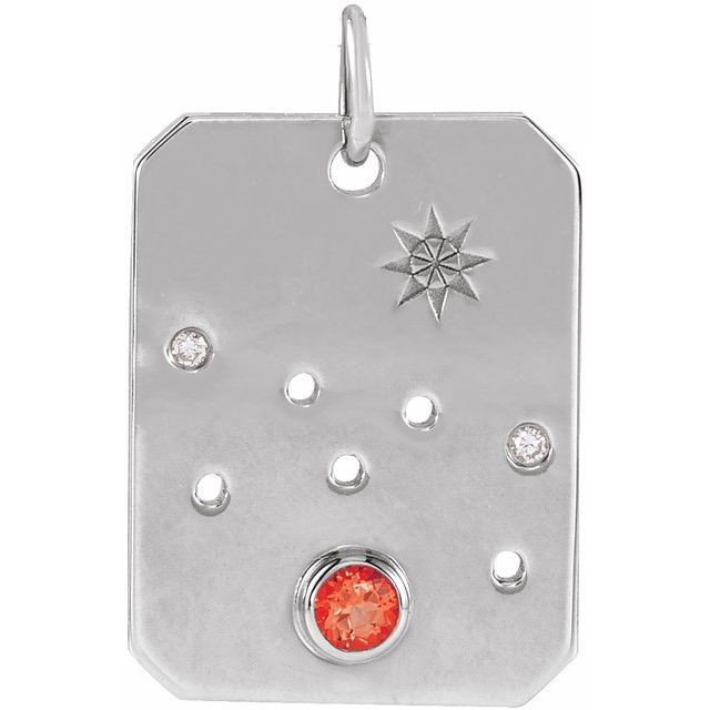 14 Karat White Gold Natural Mexican Fire Opal & .0075 Carat Natural Diamond Taurus Zodiac Constellation Pendant