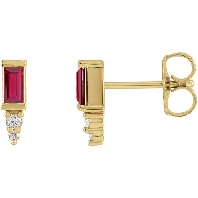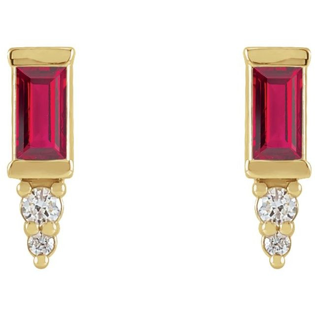 14 Karat Yellow Gold Natural Ruby and .03 Carat Natural Diamond Bar Earrings