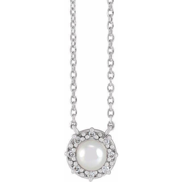 Sterling Silver Cultured Akoya Pearl & .03 Carat Natural Diamond Halo-Style 16 inch Necklace Comes Set With
