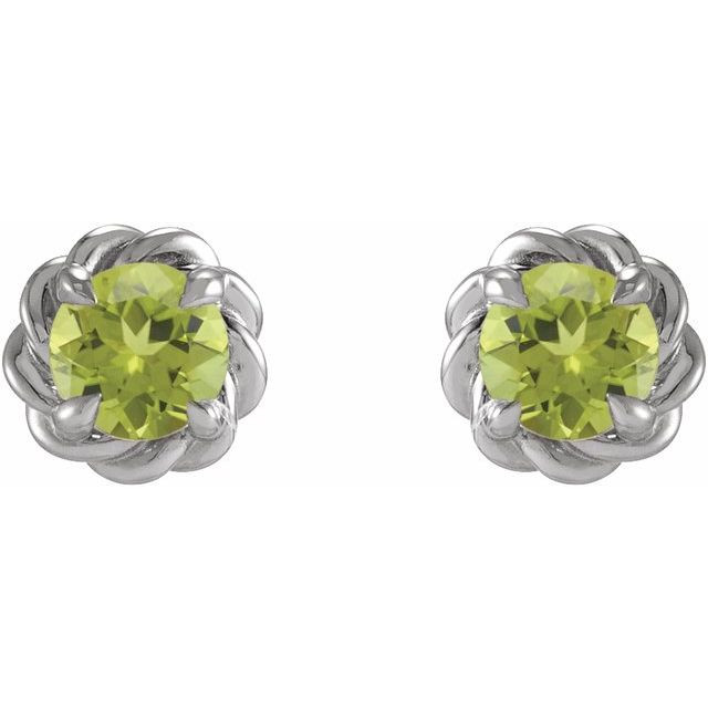 14 Karat White Gold 4 mm Natural Peridot Claw Prong Rope Earrings