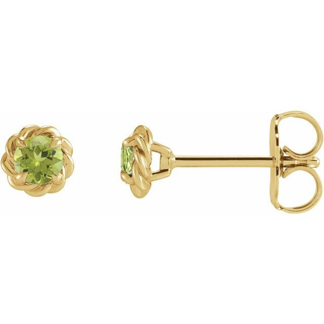 14 Karat Yellow Gold 4.5 mm Natural Peridot Claw Prong Rope Earrings