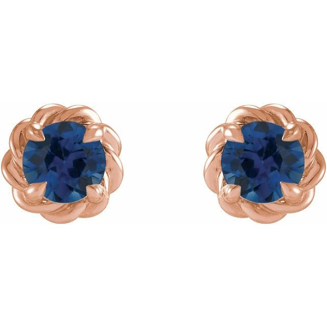 14 Karat Rose Gold 4.5 mm Natural Blue Sapphire Claw Prong Rope Earrings