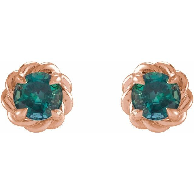14 Karat Rose Gold 5 mm Lab Grown Alexandrite Claw Prong Rope Earrings