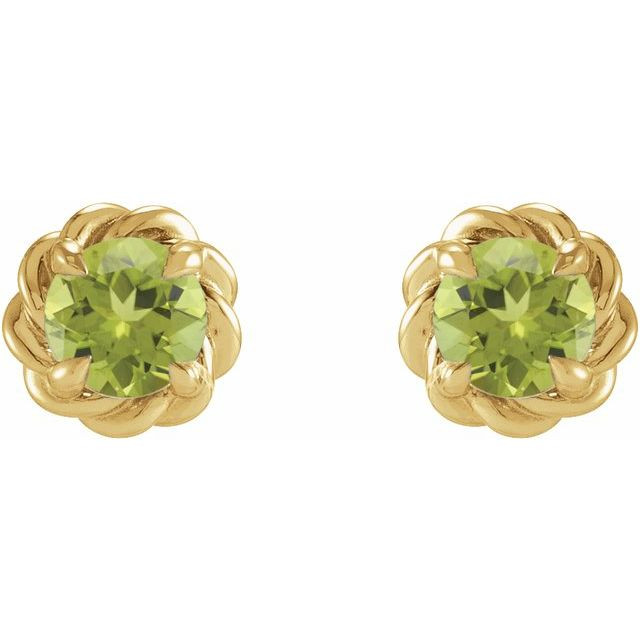 14 Karat Yellow Gold 5 mm Natural Peridot Claw Prong Rope Earrings