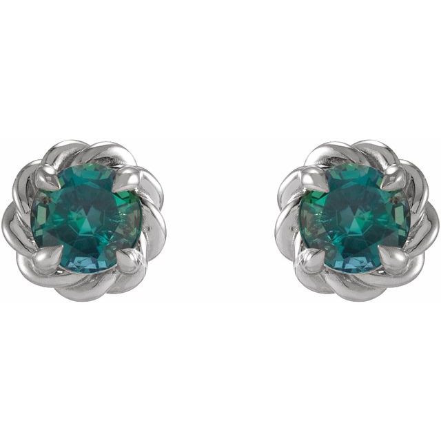 14 Karat White Gold 5 mm Lab-Grown Alexandrite Claw-Prong Rope Earrings Comes Set With