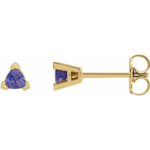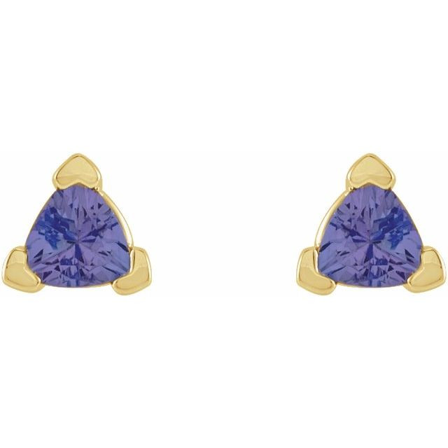 14 Karat Yellow Gold 5 mm Trillion Natural Tanzanite V Prong Earrings