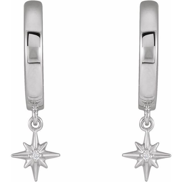 14 Karat White Gold .0075 Carat Natural Diamond Celestial Hinged Hoop Earrings