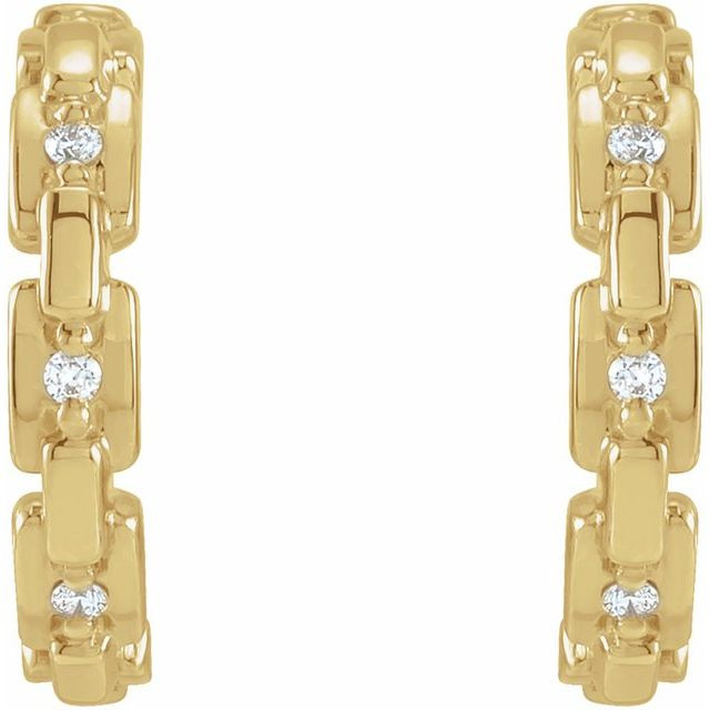 14 Karat Yellow Gold .04 Carat Natural Diamond Chain Link 12.5 mm Huggies