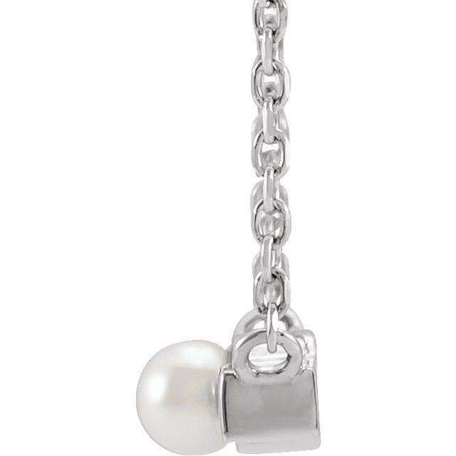 Sterling Silver Cultured Seed Pearl & 0.16 Carat Natural Diamond Petite Bar Necklace Center Comes Set With