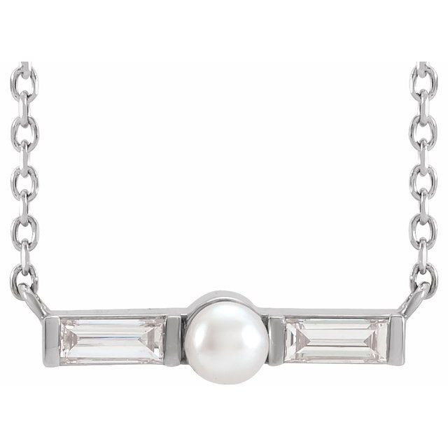 Platinum Cultured Seed Pearl and 0.16 Carat Diamond Petite Bar 18 inch Necklace