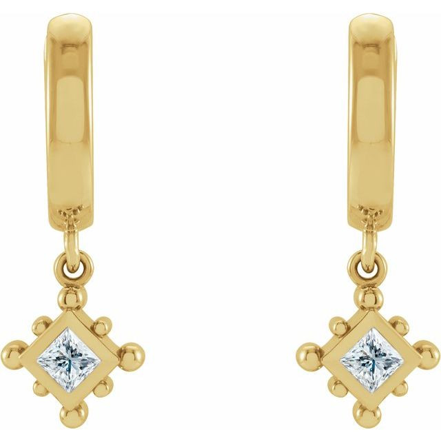 14 Karat Yellow Gold 0.20 CT Natural Diamond Beaded Bezel Set Hoop Earrings