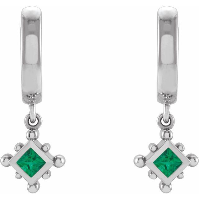 14 Karat White Gold Lab Grown Emerald Beaded Bezel Set Hoop Earrings