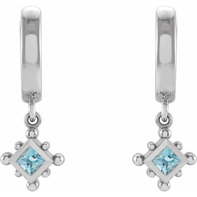 Platinum Natural Aquamarine Beaded Bezel Set Hoop Earrings