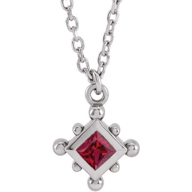 14 Karat White Gold Lab Grown Ruby Bezel Set Beaded 16 inch Necklace