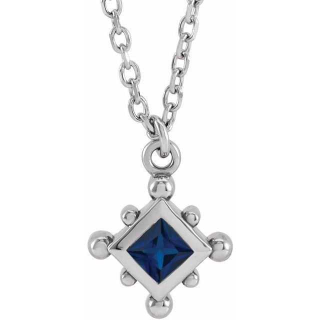 14K White Natural Blue Sapphire Bezel-Set Beaded 16 inch Necklace Comes Set With