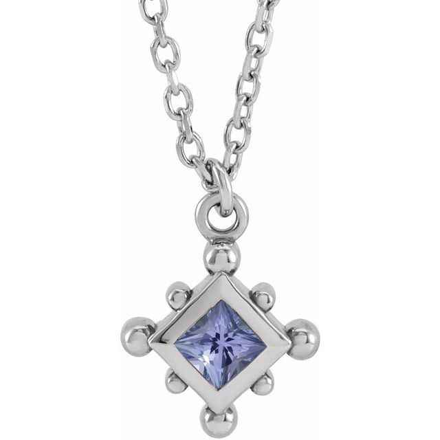 14K White Natural Tanzanite Bezel Set Beaded 16 inch Necklace
