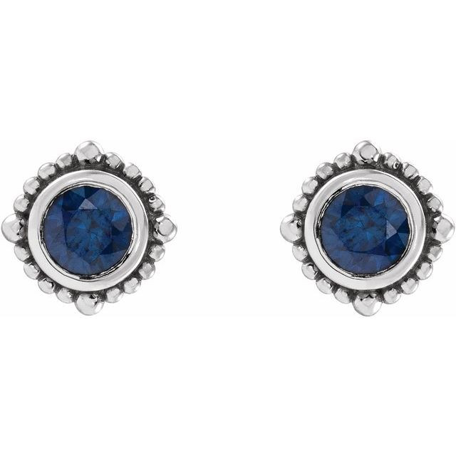 14 Karat White Gold 4.5 mm Natural Blue Sapphire Beaded Halo-Style Earrings Comes Set With