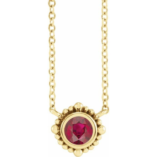 14 Karat Yellow Gold 3 mm Natural Ruby Beaded Bezel-Set 18 inch Necklace Comes Set With