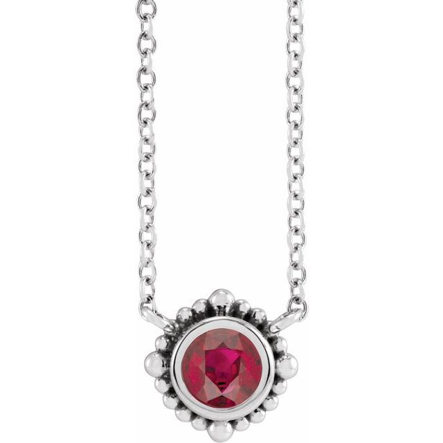 Sterling Silver 4 mm Natural Ruby Beaded Bezel Set 18 inch Necklace