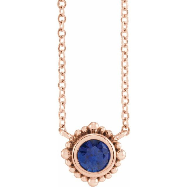 14 Karat Rose Gold 4 mm Blue Sapphire Beaded Bezel Set 18 inch Necklace