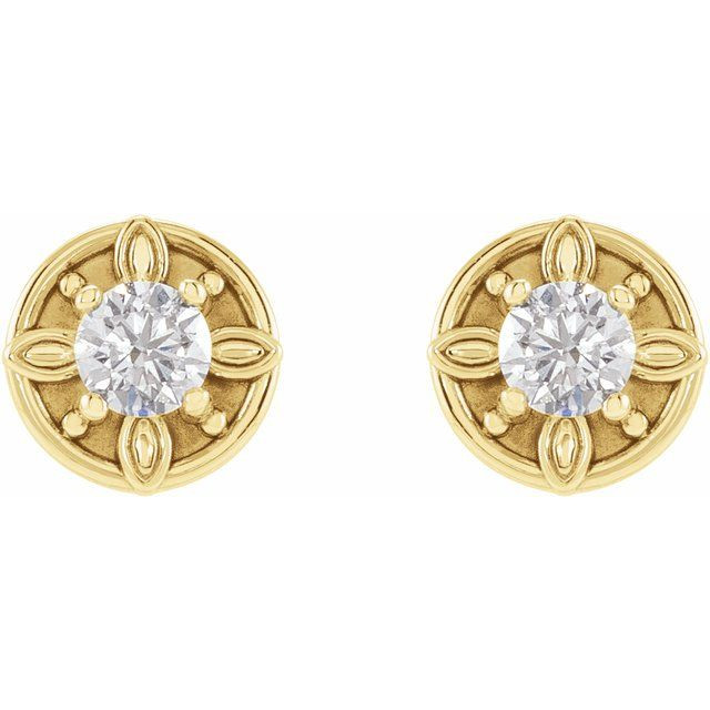 14 Karat Yellow Gold 0.20 Carat Natural Diamond Floral-Inspired Earrings Comes Set With