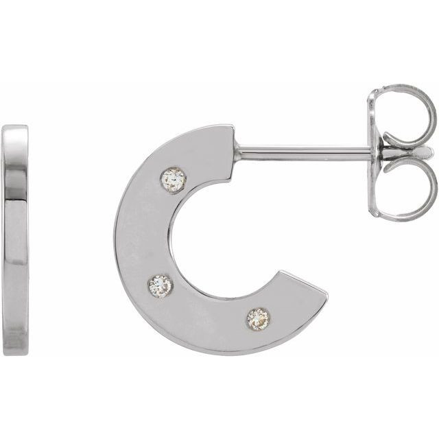 Sterling Silver .025 Carat Natural Diamond Flat Hoop Earrings