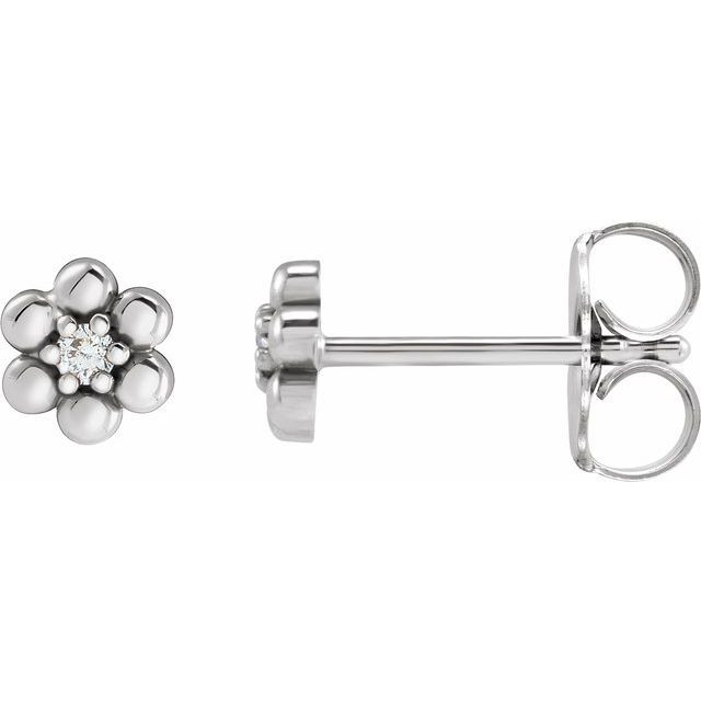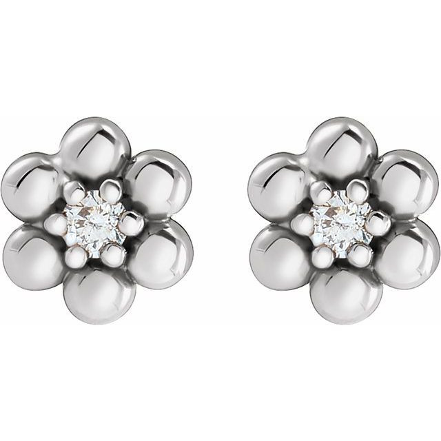 Sterling Silver .03 Carat Natural Diamond Beaded Daisy Earrings