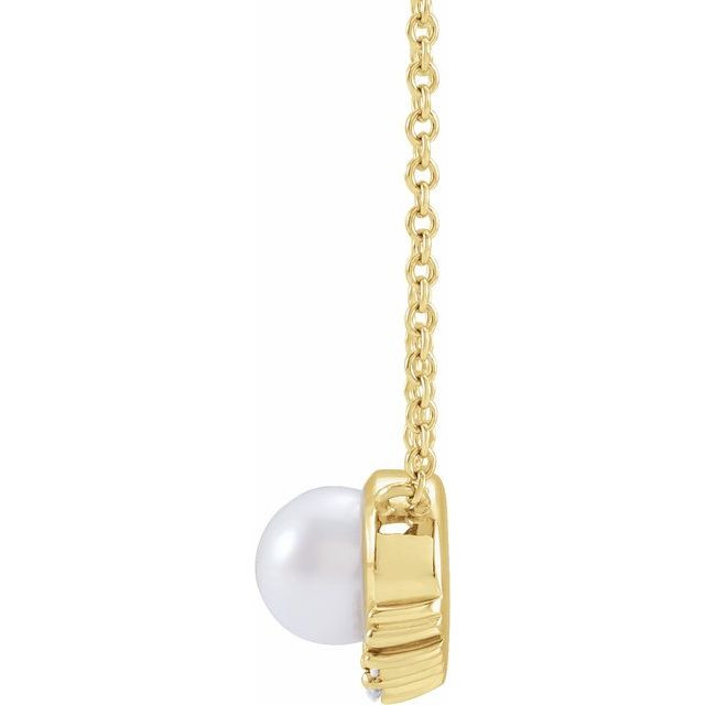 14 Karat Yellow Gold Cultured White Akoya Pearl and .025 Carat Diamond 18 inch Necklace