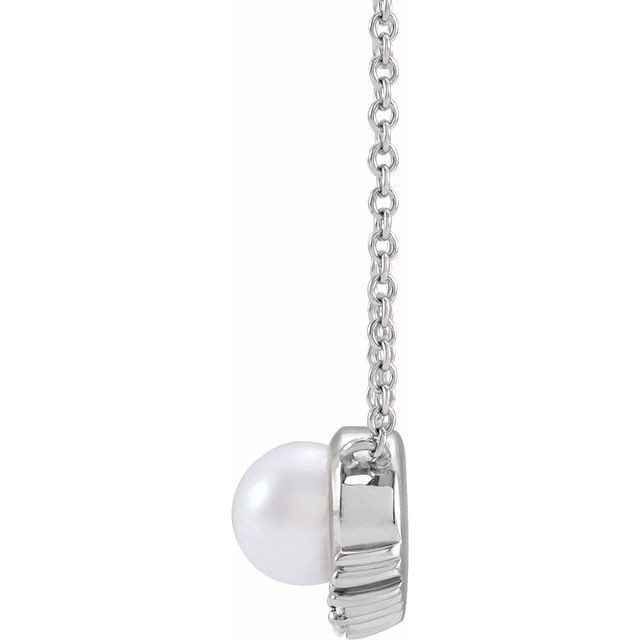 Platinum Cultured White Akoya Pearl and .025 Carat Diamond 18 inch Necklace