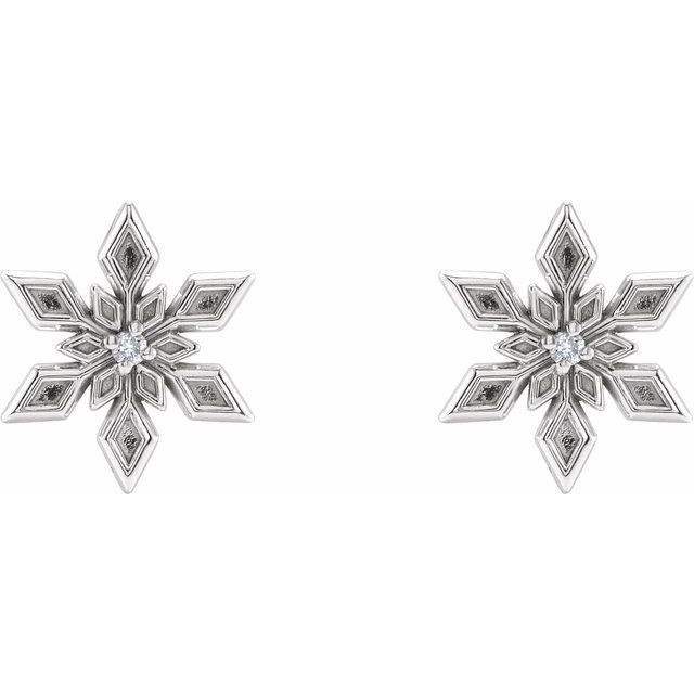 14 Karat White Gold .0075 Carat Natural Diamond Snowflake Earrings