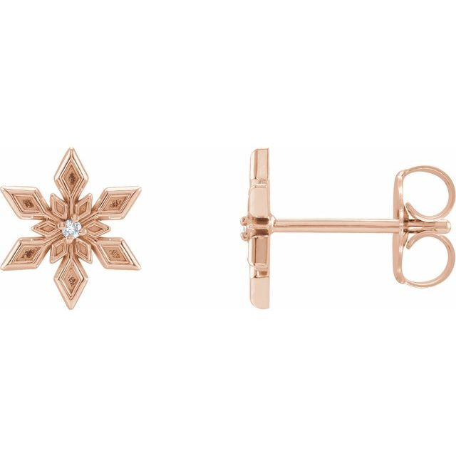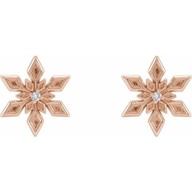 14 Karat Rose Gold .0075 Carat Natural Diamond Snowflake Earrings