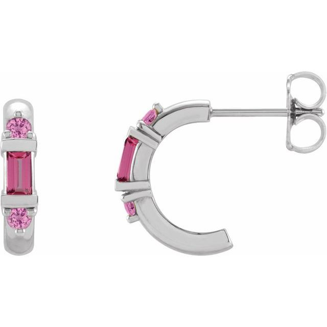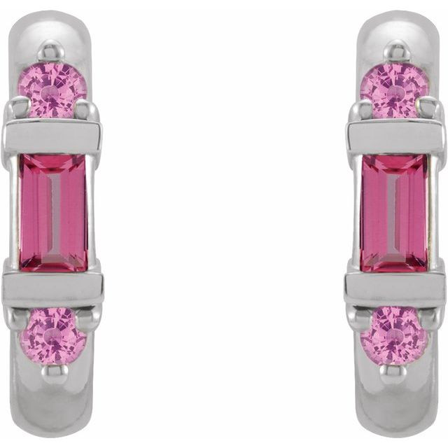 Sterling Silver Natural Pink Tourmaline Hoop Earrings