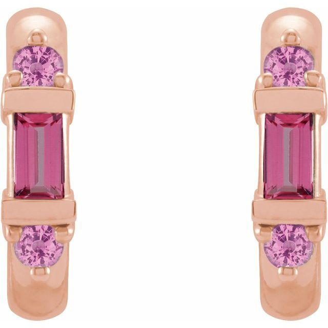 14 Karat Rose Gold Natural Pink Tourmaline Hoop Earrings