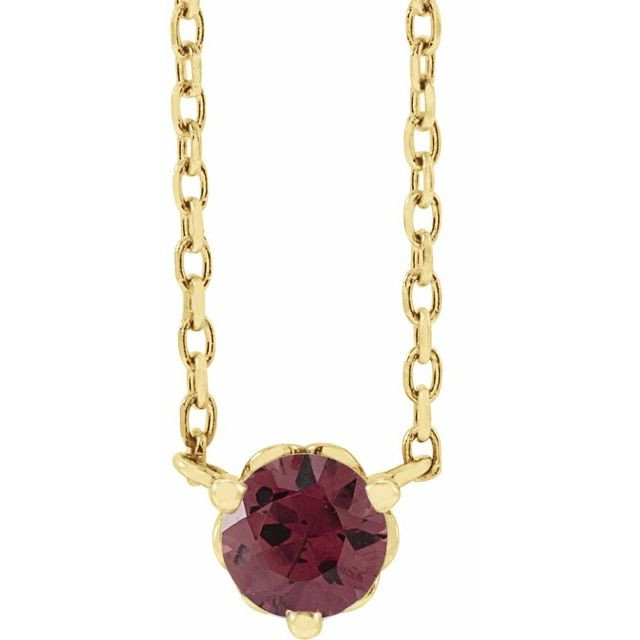 14 Karat Yellow Gold Natural Rhodolite Garnet Solitaire 18 inch Pendant