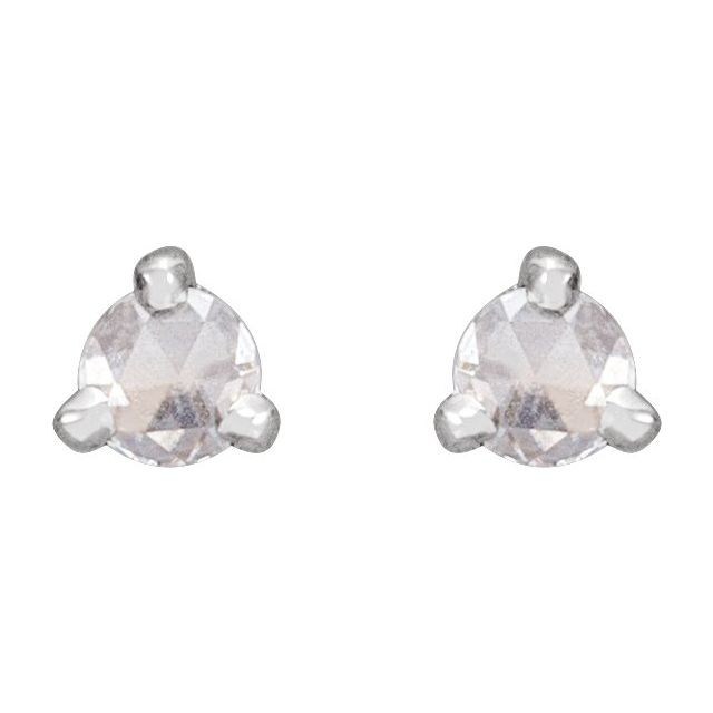 Sterling Silver .08 Carat Rose-Cut Natural Diamond 3-Prong Claw Earrings Comes Set With