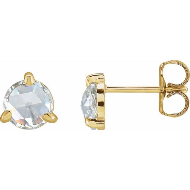 14 Karat Yellow Gold 1 Carat Rose-Cut Natural Diamond 3-Prong Claw Earrings Comes Set With