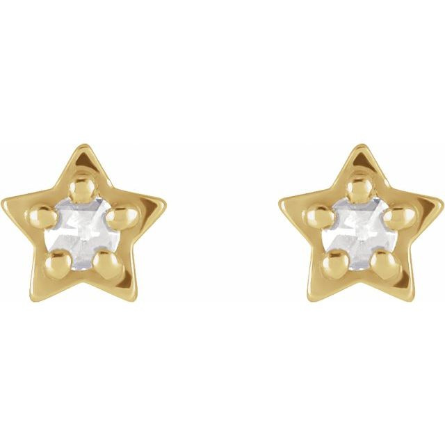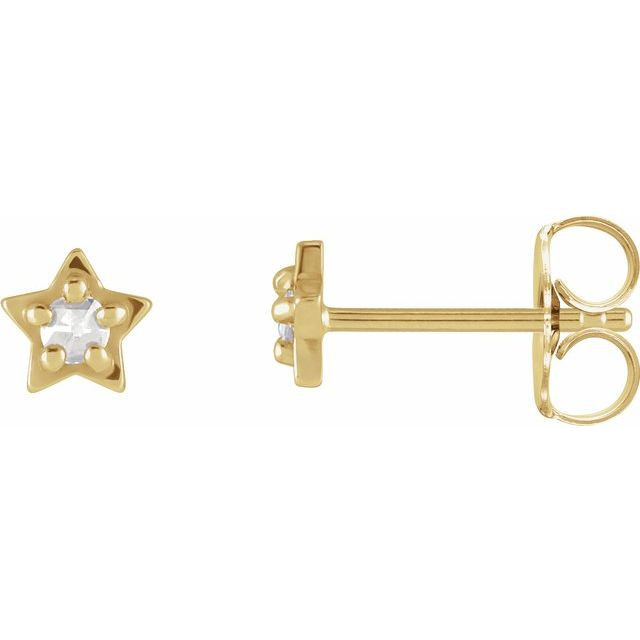 14 Karat Yellow Gold .05 Carat Rose-Cut Natural Diamond Petite Star Earrings Comes Set With