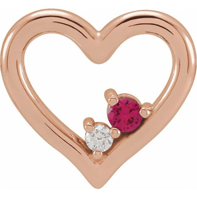 14 Karat Rose Gold Ruby and .015 Carat Diamond Heart Pendant