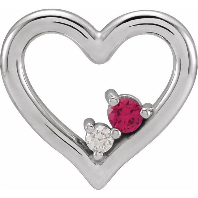 14 Karat White Gold Ruby and .015 Carat Diamond Heart Pendant
