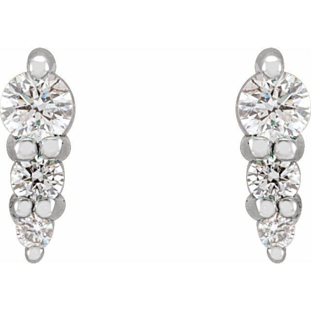 14 Karat White Gold 0.10 Carat Natural Diamond Three Stone Graduated Bar Earrings