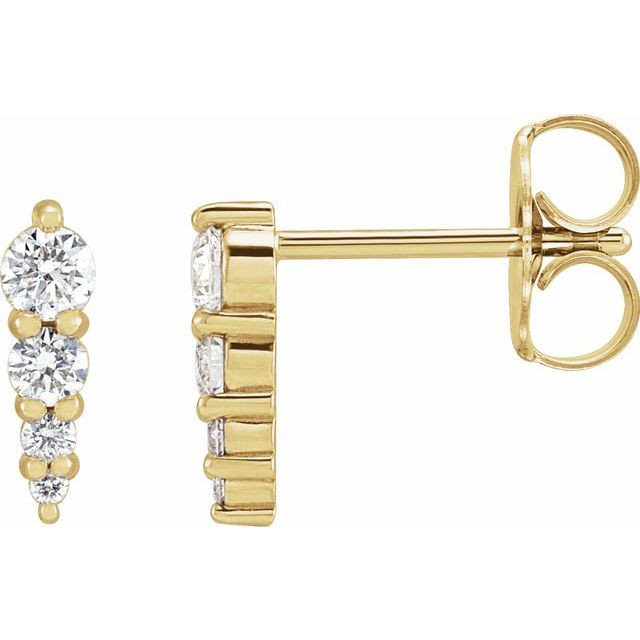 14 Karat Yellow Gold 0.20 Carat Natural Diamond Four-Stone Graduated Bar Earrings Comes Set With