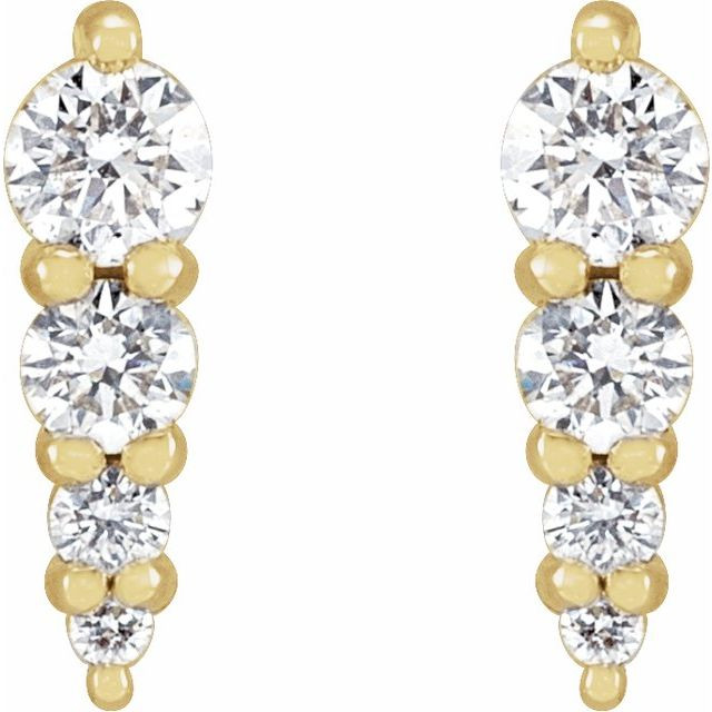 14 Karat Yellow Gold 0.20 Carat Natural Diamond Four Stone Graduated Bar Earrings