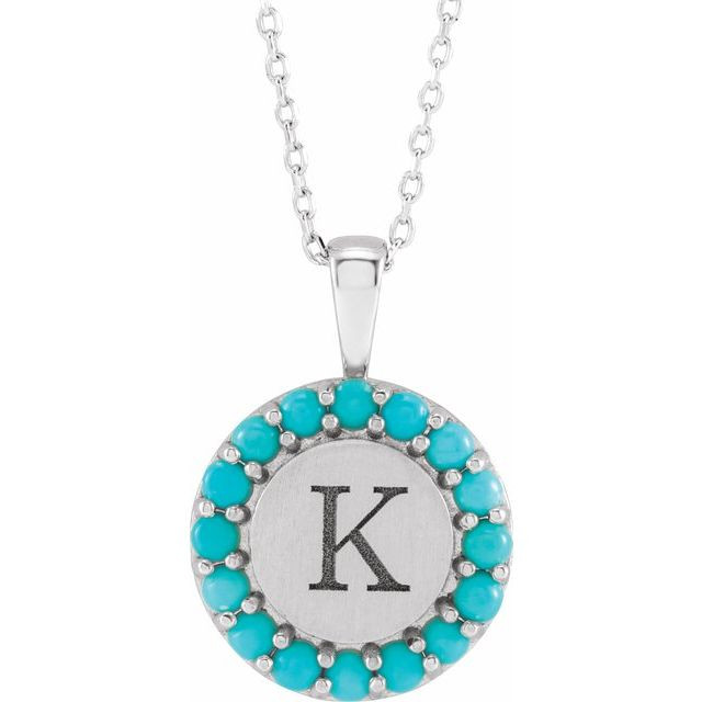 14K White Natural Turquoise Engravable Halo Style 16 inch Necklace