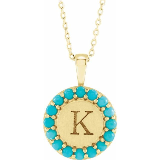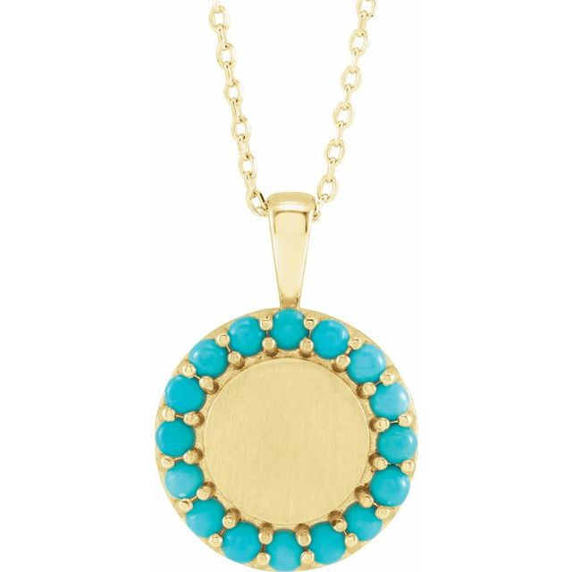 14K Yellow Natural Turquoise Engravable Halo-Style 16 inch Necklace Comes Set With