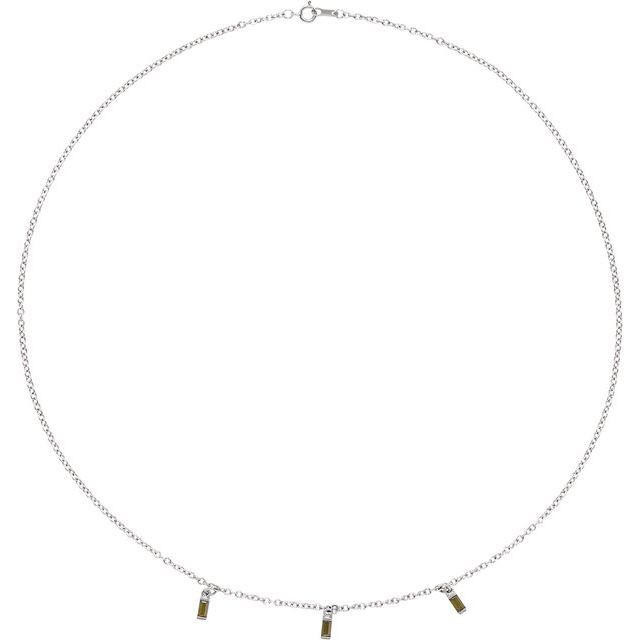 14K White Natural Green Tourmaline 16 inch Necklace Comes Set With