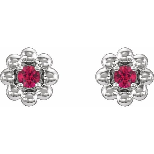 Sterling Silver Natural Ruby Petite Flower Beaded Earrings Comes Set With
